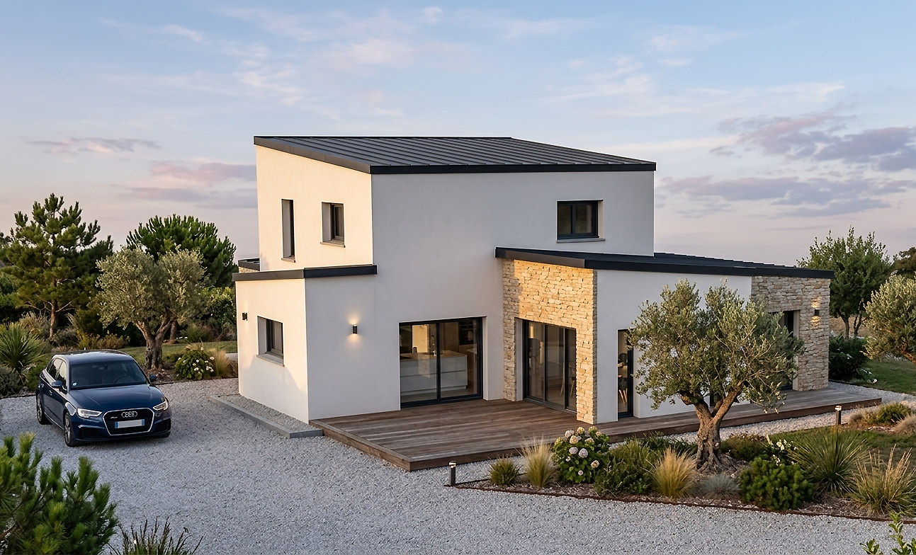 Maison + Garage Bac acier à St JACUT LES PINS (56)